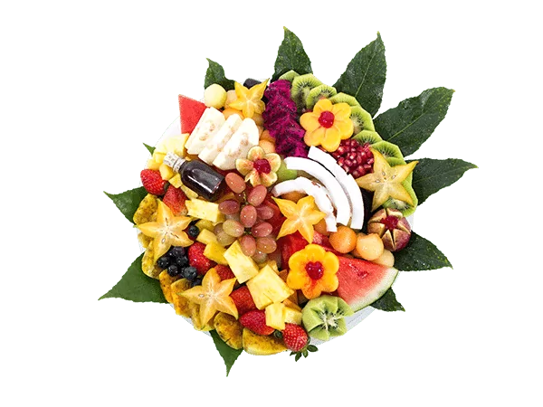מגש פירות עגול בקוטר 30 ס”מ עם מבחר פירות טריים ועונתיים בסידור מעוצב. המגש מגיע עם אריזה הרמטית וסרט מתנה. מתאים ל-3-5 אנשים, מושלם למשפחה קטנה או לפגישה קטנה 🍇